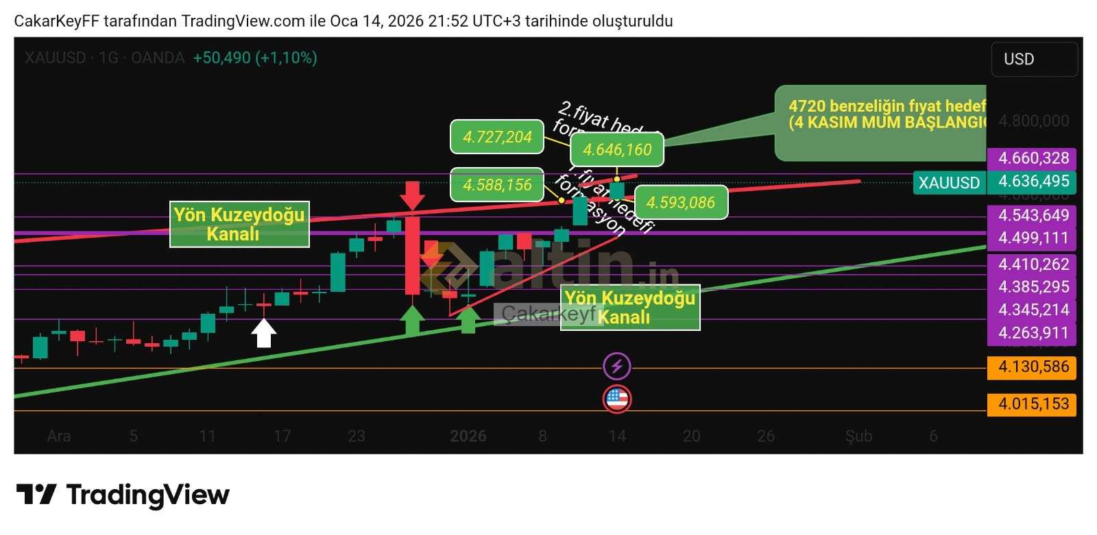 Yön_Kuzeydoğu (14 dakika önce)Çok teşekkürler hocam benim için sürpriz oldu ismimi grafikte görünce çok mutlu oldum gerçekten. Okuyamıyorum rakamlar havada uçuşuyor hocam ama tek anladığım aşağıda destek 4999$ yukarıda direnç 4660$ Kanal çok ta geçilmeyecek düzeyde değil, yelkenli ile kolayca geçeriz inşallah:)) Saygılar. @Çakarkeyf
