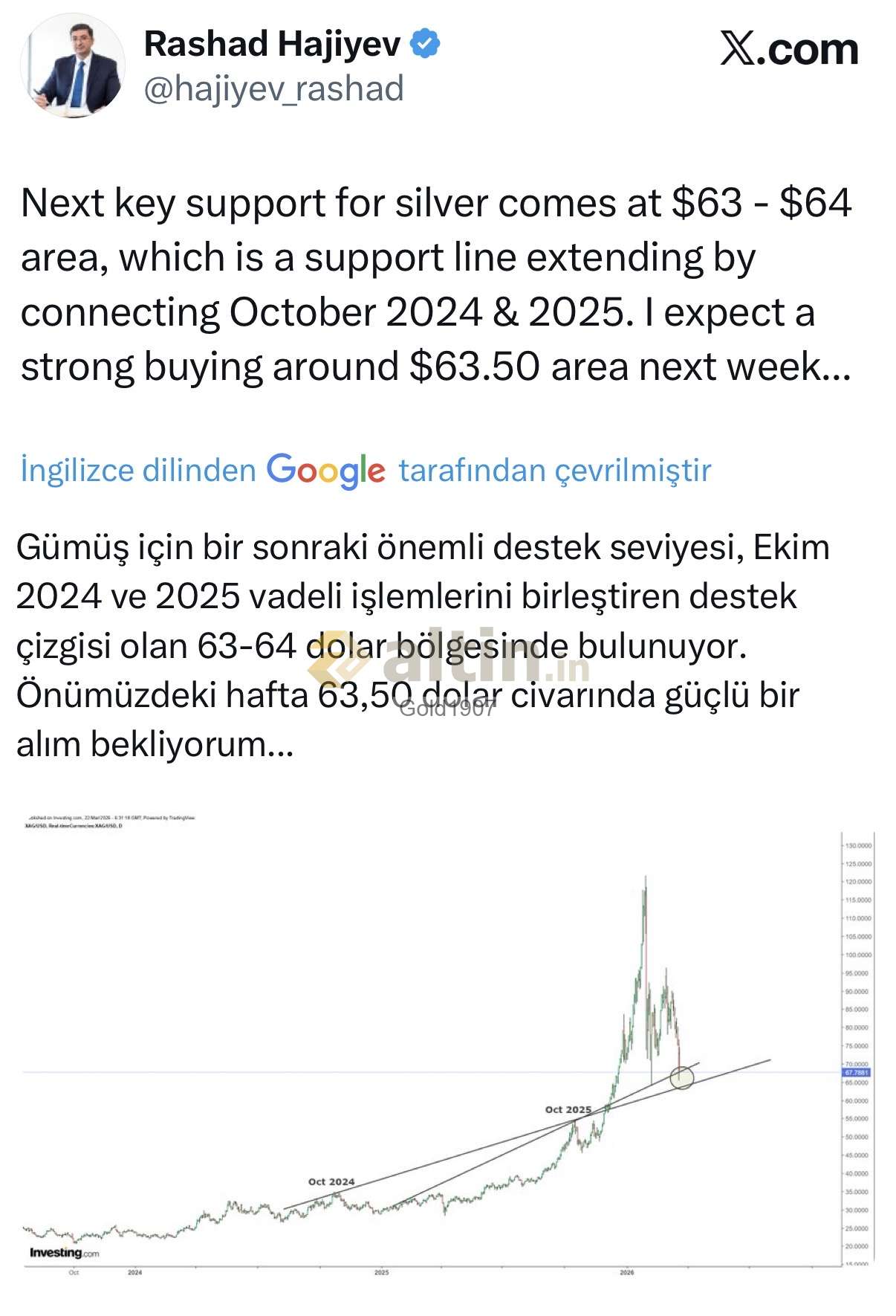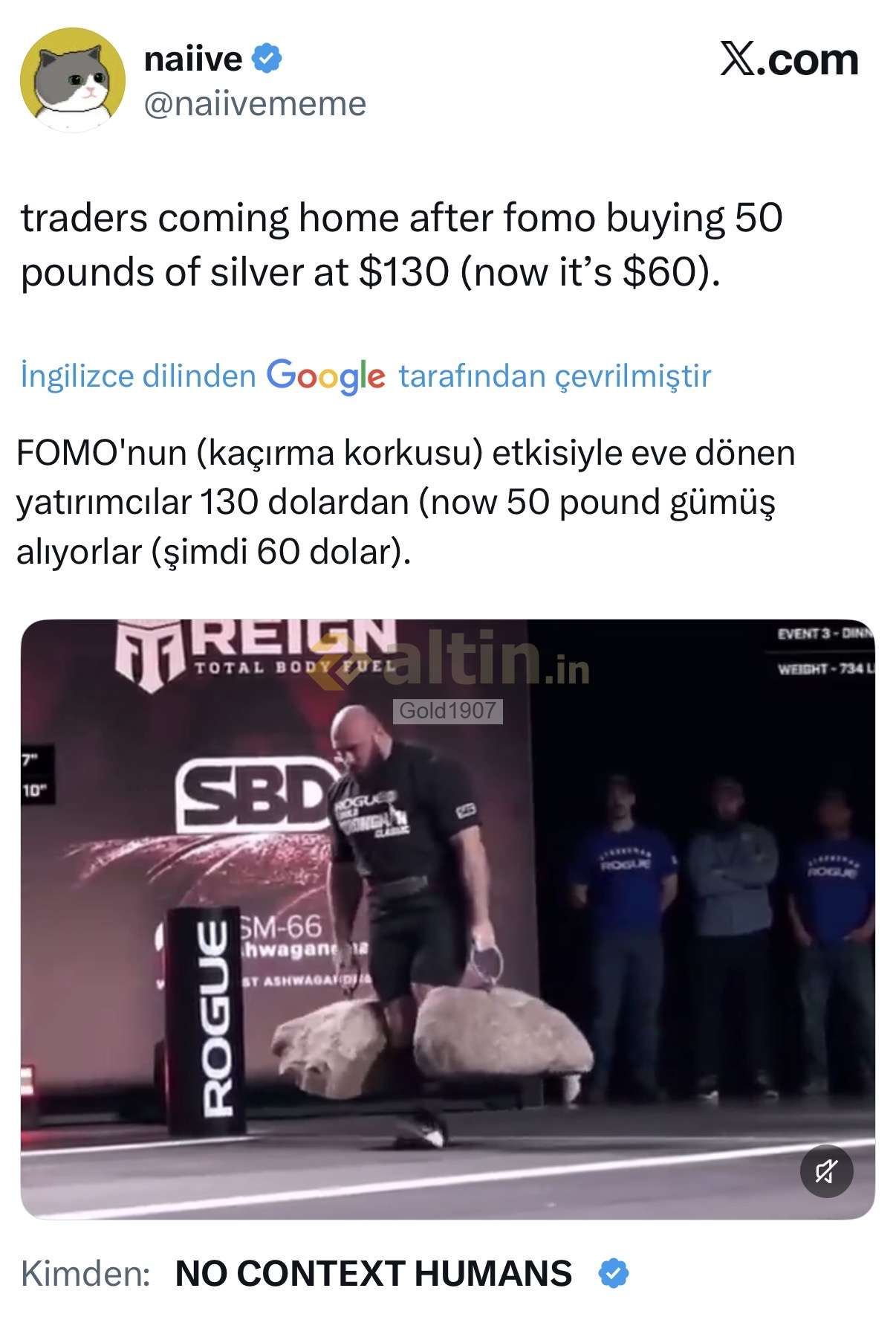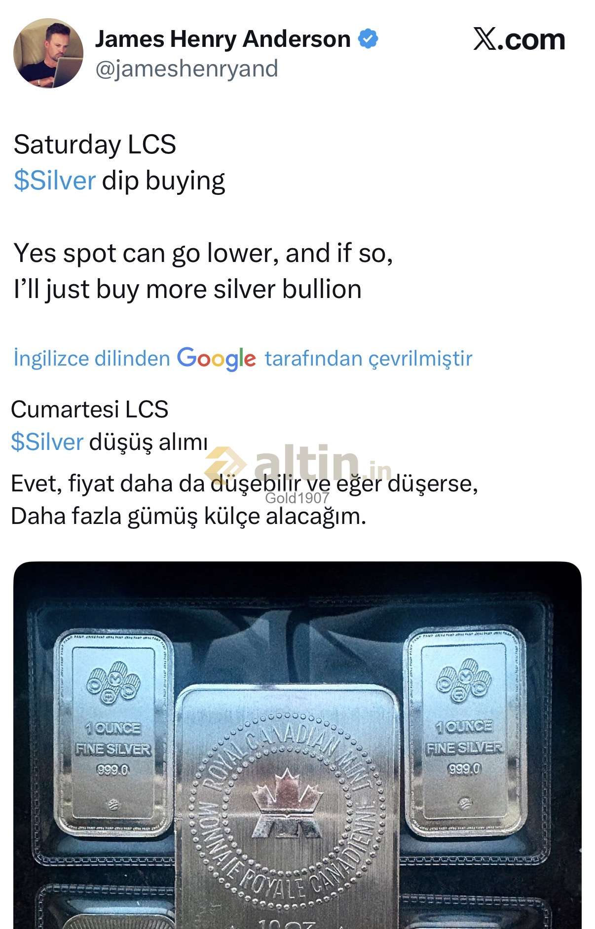 Kasman (20 dakika önce)Ons 50 dolar olup dolar 60 tl olursa gram gümüş 96 lira 45 kuruş olur uzun vade psikoloji dayanması önemli çokta tl olarak yormayacak gibi ama inşallah bekletmeden bi yerden döner artık
