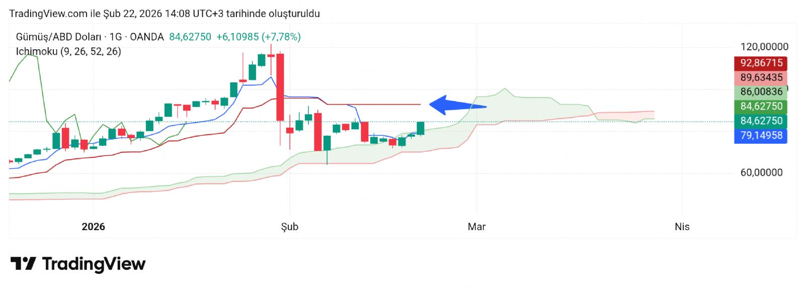 Alicim olası bir düzeltme durumunda hani dipte 73.00 71.00 hattı vardı biliyorsun onun gibi düşün şu an güncelde 83.00 81.00 var yakın destek konumunda