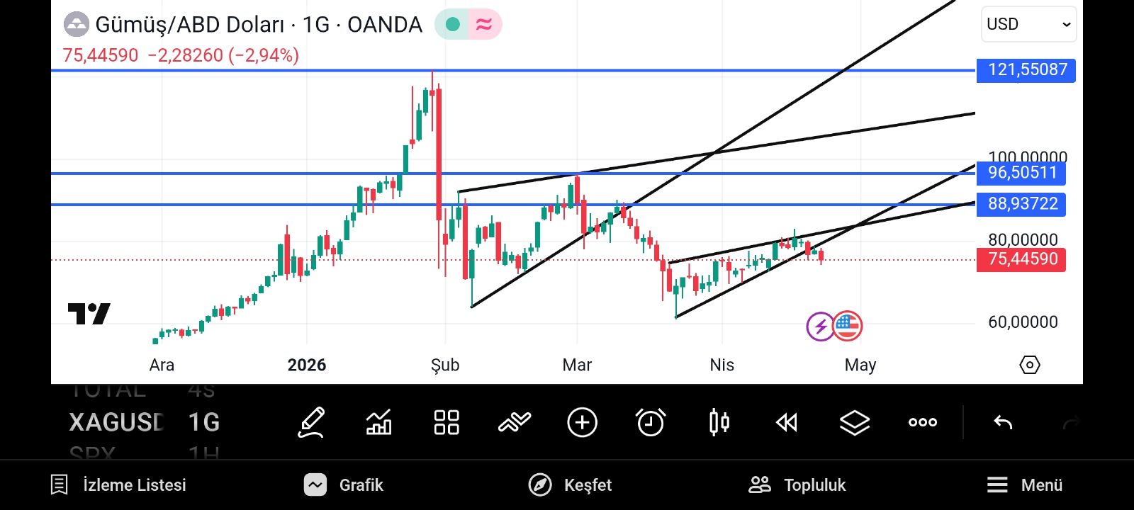 karizma707 (13 dakika önce)Adamlar öyle bir sistem kurmuş ki büyük alım 113 bantında ama kimse satamadı çark sarmalı var algoritma piyasaya göre müthiş büyük kar etmen imkansız gibi ne zaman gümüş satıldı %70 piyasadan o zaman arkasından yetişemezsin