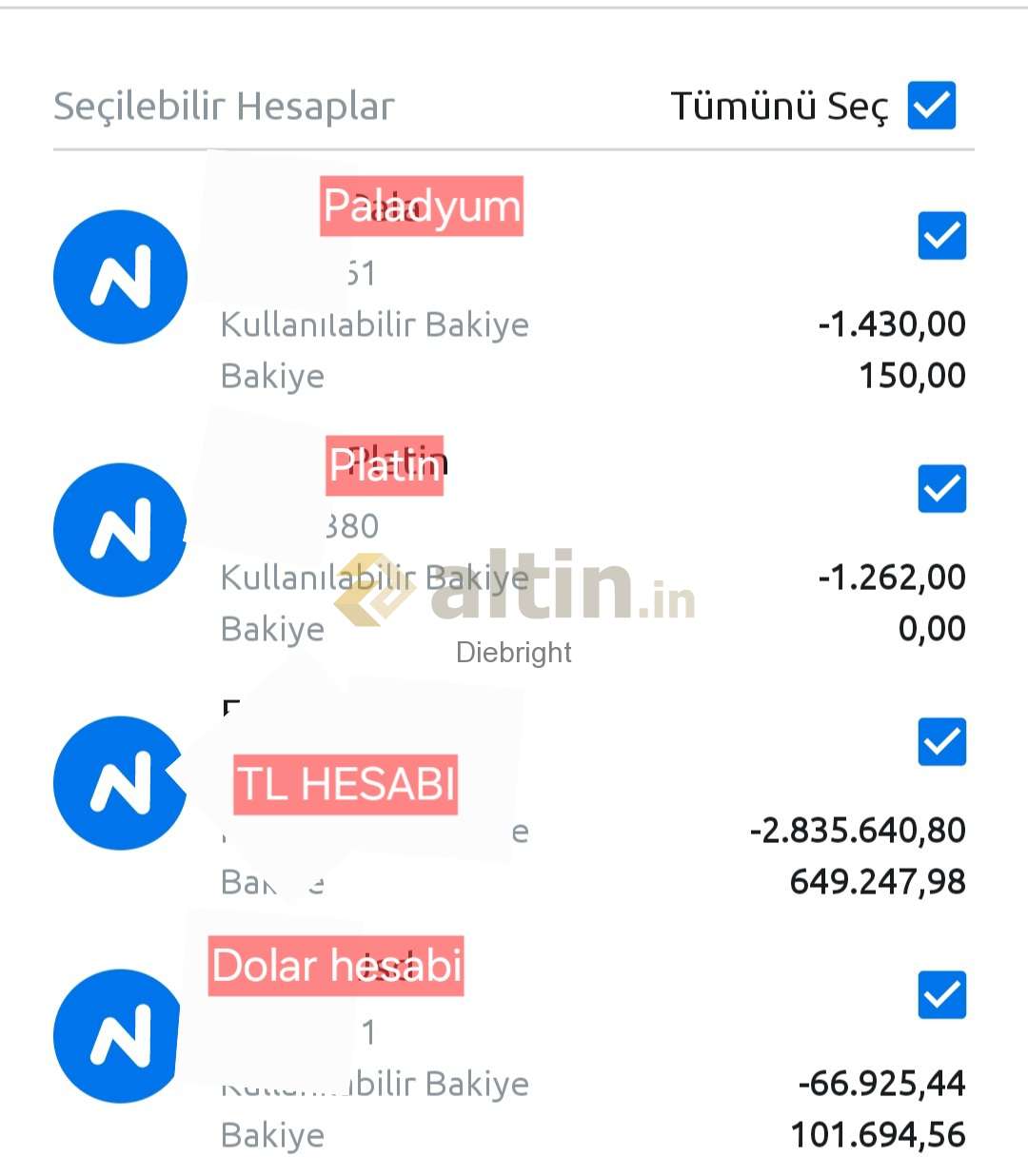 Bana uygulamayı düşündükleri kesinti bu sanırım. 66925 usd. Tl, paladyum ve platin paritesine de çevirdiğimde uyuşuyor. Fakat tüm hesaba bloke uygulamislar. Başka bankadan bakınca kullanılabilir hesaplarım ve mevcut bakiye boyle görünüyor.
