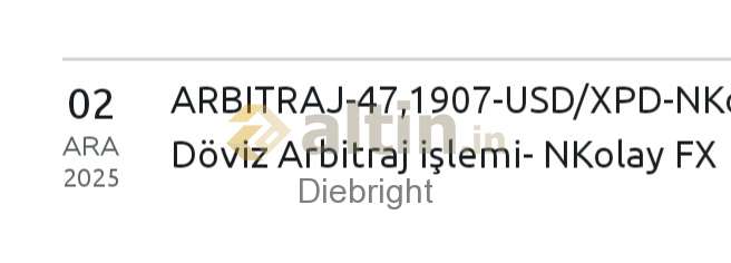 Diebright (28 dakika önce)Yok arbitrajda fena makas var. Fx üzerinden takip ettim paladyum yükseliyorken anlik 47.19 satış gordu. 47.19-47.18 ve 47.02 satışlar verdim. Fx sıkıntılı yalnız ekran değeri çok ve hızlı değişiyor. Arada 47.18 satayım derken 46.7 den de bir parça gitti. Dünkü 5000 usd kâr erimisti. Bu sayede o kârın çoğunu geri aldım. Şu an fx harici işlem imkansız. Fx de zaten 18.00 sonrasi makas girdi. Bu haliyle hafta içi sadece 09-18 arasi işlem yapabiliriz.