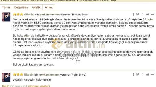 Gümüş için gorkemmmmm yorumu ()Selam arkadaşlar iki kez paylaşım yaptım sayfaya düşmedi. Biri de B. t. c sayfasına düşmüş sanırım. Sayfama girip bu haftaki durum değerlendirmesini görebilirsiniz. İyi akşamlar dilerim.