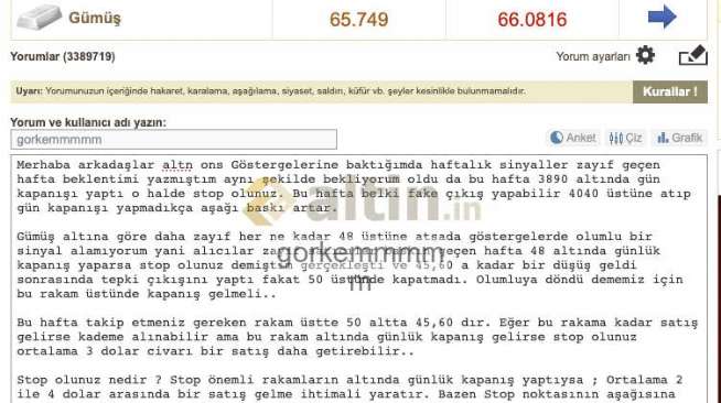 Gümüş için gorkemmmmm yorumu ()Konu: #34336458 Grafik detay ve yorumları