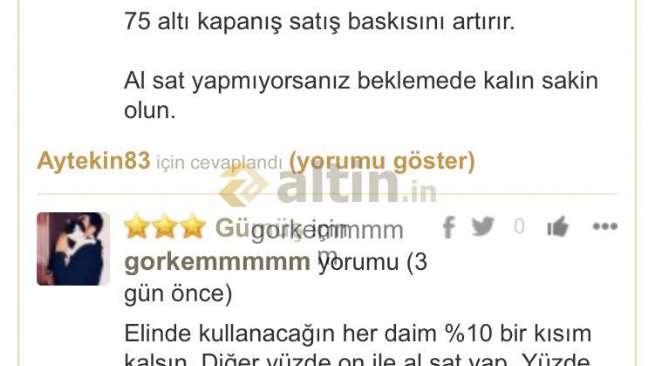 Gümüş için gorkemmmmm yorumu ()Hayırlı günler kardeşim evet sıfır üstüne attı ama önemli olan kalıcılığı 77,30 a kadar gücü yeter belki sonra yine satış v. s böyle böyle toparlanacak inşallah.