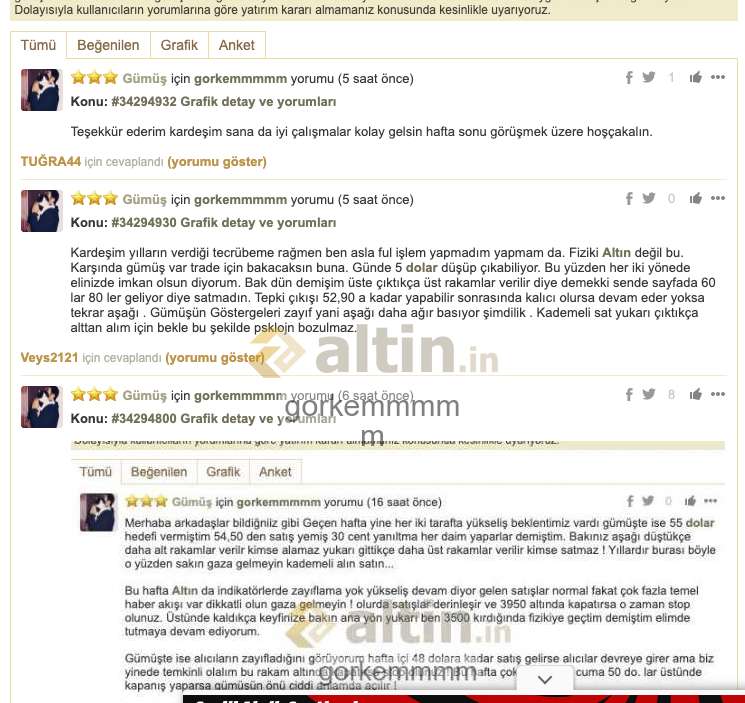 Gümüş için gorkemmmmm yorumu ()Konu: #34294800 Grafik detay ve yorumları
