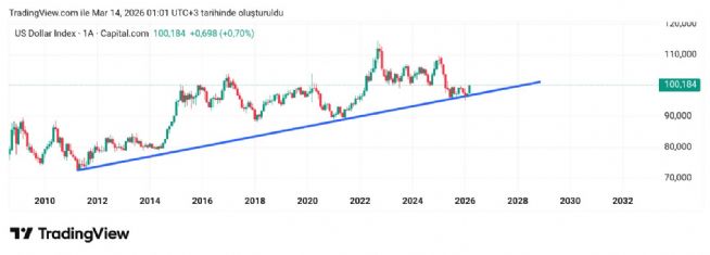 Aylardır izlediğim önemli trend desteği. Çok önceleri paylaştım bunu aynen takibim devam ediyor. Burası üste parite alta dedim bilen bilir. Şuan parite geriye iniyor burası üste çıkıyor. 100 önemli nokta direnç olarak. Tam burada şuan.