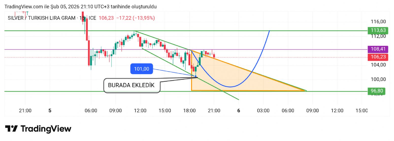 Gümüş için Hayalet_adam yorumu ()Gram 108 aştığında 111-113 devam ben orada duruma göre az önce dipten 101 den aldığım parçayı şutingen nasip olursa inşAllah :)