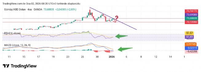 Gümüş için Hayalet_adam yorumu ()Peki 74 üstü önce ne yapar dersek önce kırılım onayı alıp sonra 78 e baskı yapar demektir. İşte karar yeri buna karar verecek. Kim nerede hangi riski alacak kişi kendi verir kararını. Biz olanı yazar sonra kenara çekilir izleriz. Bilgi vermek için yazdım yoksa ben kendi takibime göre devam ediyorum şuan.