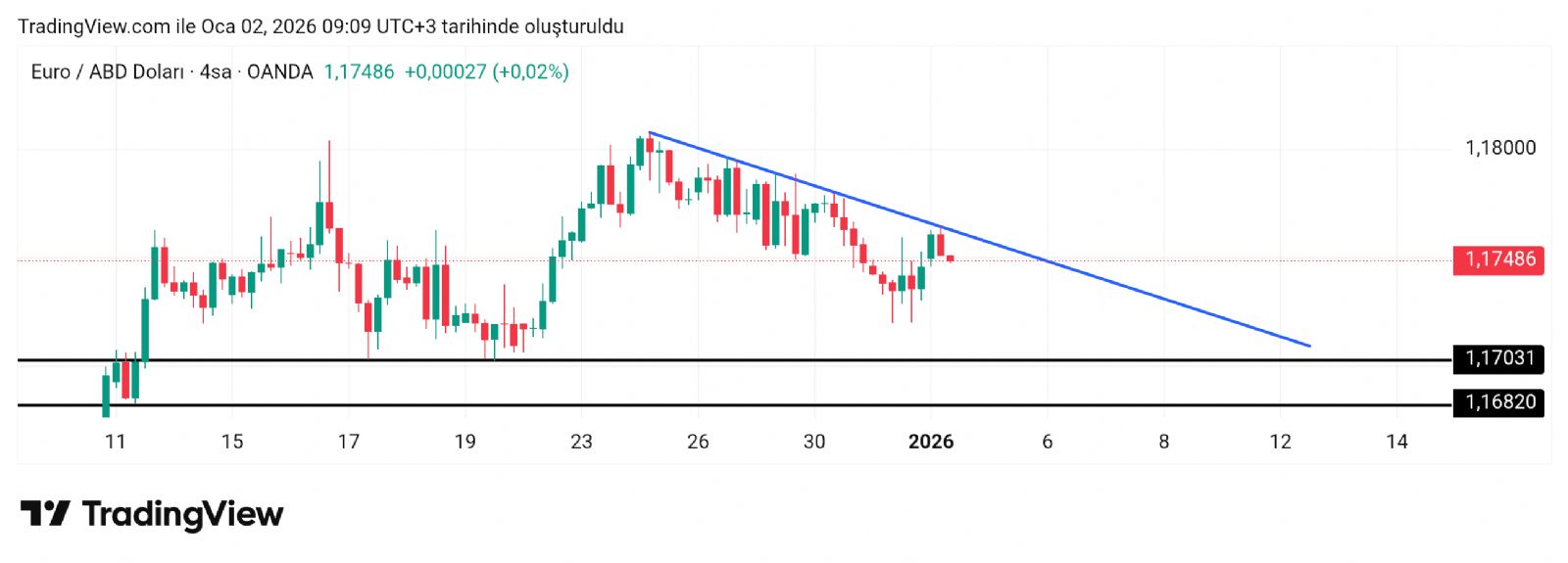Parite dirençte takılmış görünüyor. Muhtemelen yakın destekleri yoklayacak. Bunuda paylaşıp öyle çıkayım dedim.