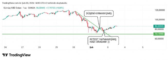 Gümüş için Hayalet_adam yorumu ()Değerli kardeşim grafiğin bazı zamanlarına göre değişir teknik olarak bunu anlatmak uzun sürer şimdi. Kısaca bazen ilk denemlerde direnç olacaktır diye bakarsınız o zaman kâr alma durumu olur ama bazen de kırma durumu olur orayı o zaman da elde tutarsınız o riski göze alarak. Her hareketin anlamı takılacak şeklinde okunmaz grafikten.