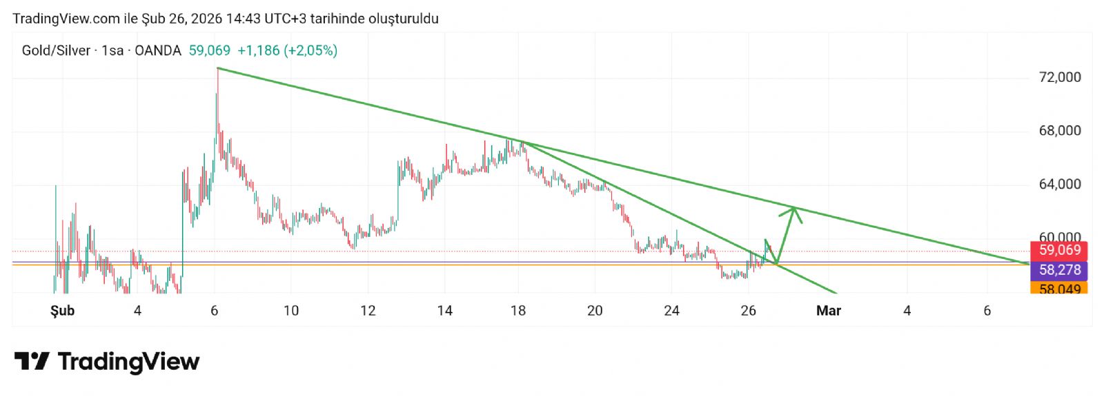 Gümüş için Hayalet_adam yorumu ()Rasyo en fazla 62-63 bantı temas olur sonra geri iner ama sonra ne olur bilmem eğer 60 geçerse.