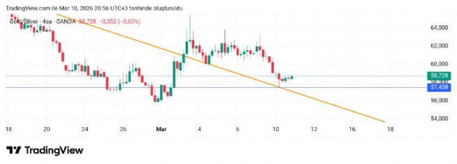 Adım adım gösteriliyorum grafikler ile ne olduğunu. Rasyo 57.4 retest noktası dedim oradan sonra üste atar ons gümüşte 89-90 geri salar dedim akşam aynen işliyor grafikler. Hele rasyo tam noktasal temas oldu 57.4 e.