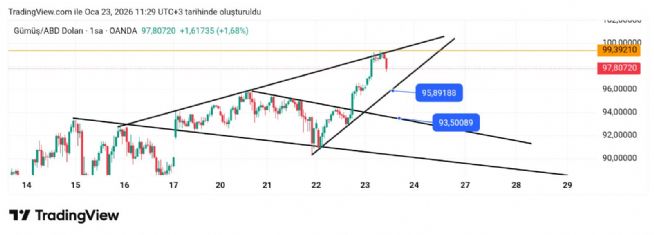 Gümüş için Hayalet_adam yorumu ()Geri gelişte grafiğin içinde bulunduğu alana göre olan destekleri izlemek lazım kardeşim öncelik olarak. Şuan öncelik kısadaki yükselen trend desteği var. 95.8-9 arası bu değer. Bir altta ise 93 bantı var kardeşim. Takip etmek lazım buraları geri inişte. Üste ise bayadır sağlam direnç olan hat takipte. Oda anlık 100 bantında.