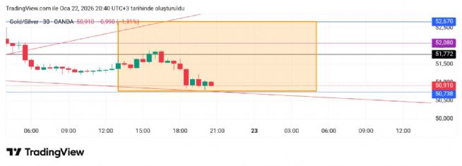 Son durum. Hareket alanı içinde devam. Alt bant alçalan kama retest noktası, üst bant ise Altın a kırdığı yükselen trend retest noktası.