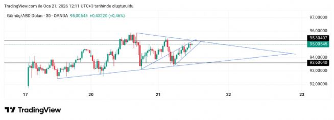 Gümüş için Hayalet_adam yorumu ()Ons gümüş kısada 94.65 üstünde duramadığı sürece 93 bantına doğru geri çekilme baskısı oluşur. 94.65 üstünde 95 bantını deniyor.