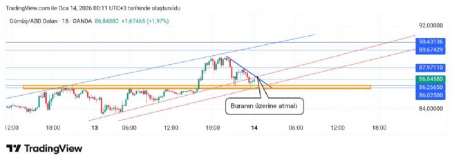 Son durum. 86 yatay bant ve trend noktasında devam ediyor. Üste atması lazım yoksa desteğe baskı yapmaya başlar.