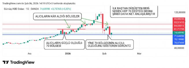 Gümüş için Hayalet_adam yorumu ()Takip ettiğim sadece 70-71 üzeri kalıcılık ve kapanışlar. Rasyoda ise 67-75 altı kalıcılık. Sonrasına sonra bakarız kardeşim.