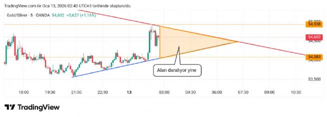 O belli değil işte inşallah üste olmaz. Üste atamadığı zaman alta devam eder önce 53 olur diye düşünüyorum. Şuan 54-55 arasına sıkıştı. Üste atarsa ons gümüşü geriye indirir biraz daha. 80 81 devam eder o zaman. Bakalım ne yapacak.