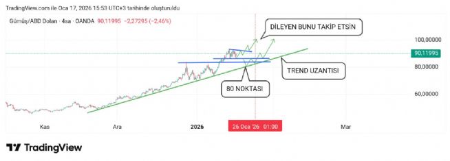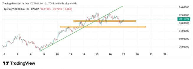 Gümüş için Hayalet_adam yorumu ()Kardeşim son 86 ya indi oradan ekleme yapılır dedim üste çıkarsa kâr alınır bir alt kademeye inerse de alttan bir ekleme daha yapılır ortalama düşürülür çıkışta her 2 parçadan da kâr alınır çıkılır dedim aynen devam. Şuan üste çıkıyor 2-3 nokta var oraları takip edip kâr almak lazım dediğim gibi. 86 her halükarda ekleme yeridir üste de çıksa alta da inse sıkıntı yok kanal ortası şuan daha öncede dedim. 89 ve 86 tepede bu iki noktayı işaret ettim 89 kırar ama 86 oyalama yapar dedim öylede oldu ekleme yeri olarak çok güzel işe yaradı. 2 durum var bu hafta onuda grafikte çizdim paylaştım az önce takip et istendiğini yap tercih senindir.