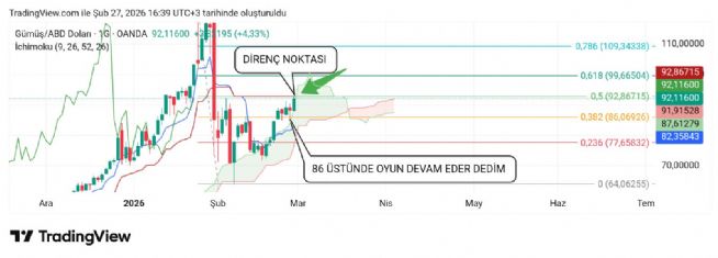 Gümüş için Hayalet_adam yorumu ()92.86 üstüne yerleşirse hedef 95 bantı olur. Yalnız 92 bantı zorlu direnç bölgesi