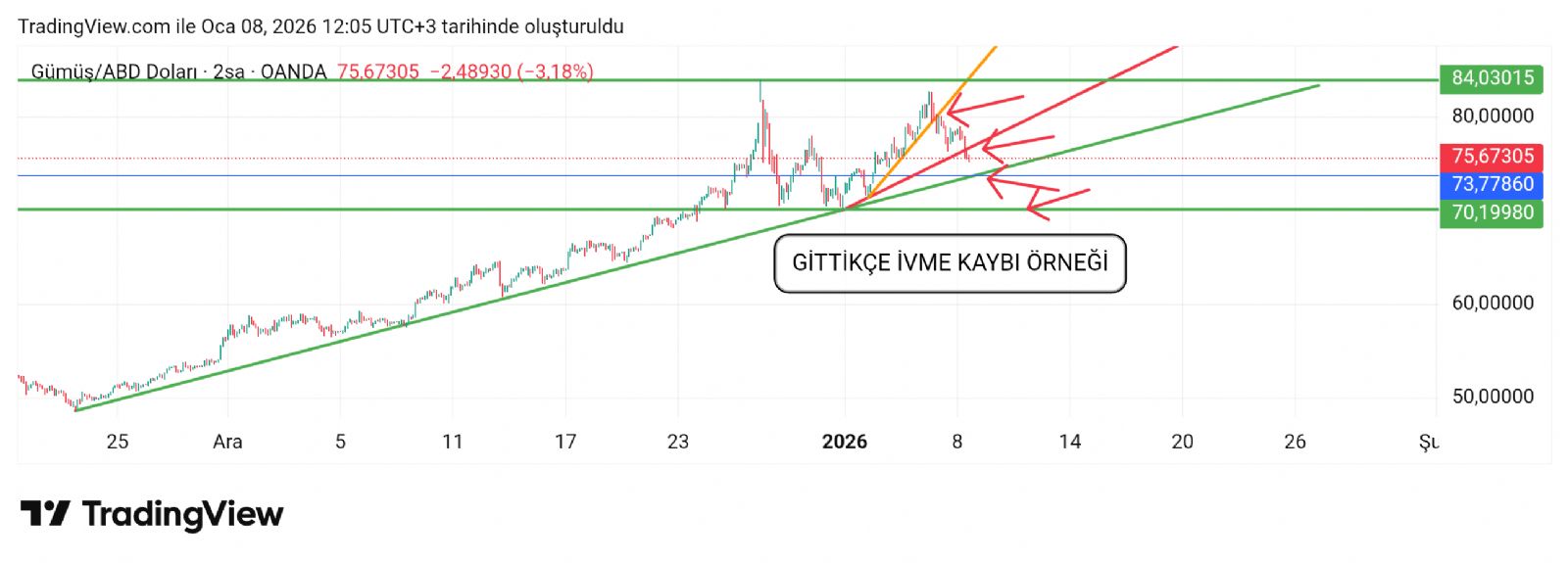 Gümüş için Hayalet_adam yorumu ()Gelen tepkilerin daha kuvvetli olması lazım. Tepeden düştüğü yerin ortasını üste atması lazım ki güçlü olsun. Yani 79 80 üstüne atıp kalıcı olması lazım. Yoksa gelen tepkilerin bir kıymeti olmaz. Tepki gelir kısa kalırsa içeri ala ala iner geriye iyi olmaz.