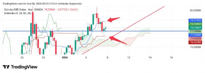 Size 78.07-77.4 5 arasının üstünde kaldığı sürece sıkıntı yok dediğim ilk nokta. Daha altı trend desteği oda iyi ama biraz daha altta kalıyor şuan. 4 saatlikte 75.7 gibi burası anlık.