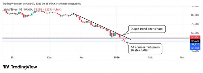Resmin büyüğüne birkez daha bakalım. 54 sonrası takip edeceğim destekler ve trend direnç hattı. Bu trend üzerine atmadığı sürece sıkıntı yok inşallah. Destek önemli değil insin sıkıntı yok ama bizim takip etmemiz lazım yinede. :)