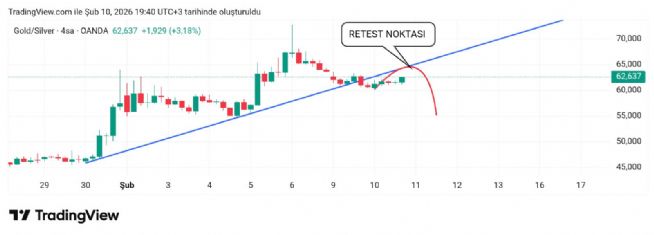 Rasyo en fazla bunu yapar sonra geriye döner arkadaşlar bana göre. Bu retest noktasına değdiği an ons gümüş dip yapmış olur sonra rasyo geriye ons gümüş üste son tepeyi egale etmeye.