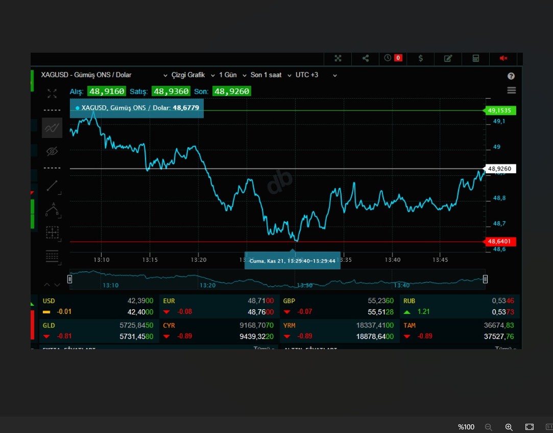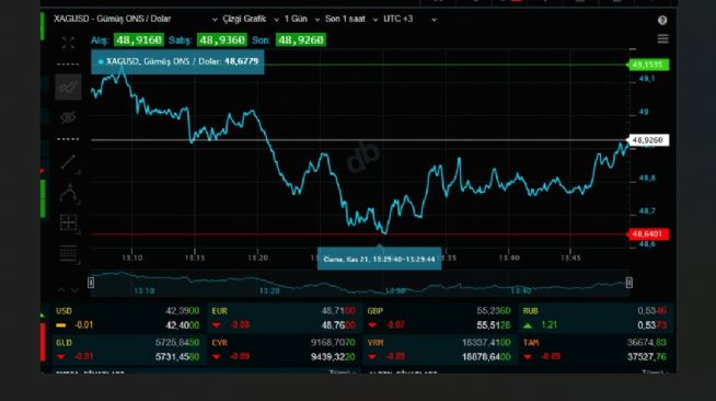 Gümüş için HÜMANİST_ yorumu ()bereketli olsun arkadaşım. bundan evvel nasıl ki 49,40 önemli oradan dönebilir deyip de 49,36 dan döndü ise bu sefer de 48,64 ten umarım dönmüştür çünkü 48,64 de çok önemli bir rakamdır ayrıca ben kasa ve masanın değil sizlerin kazanmasını canı gönülden isteyen bir hayalperestim vesselam...