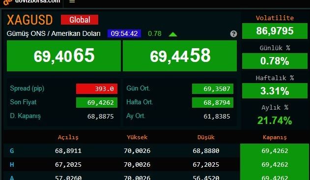 BUGÜNE ÖZEL GÜMÜŞ SATIŞ RAKAMLARIDIR