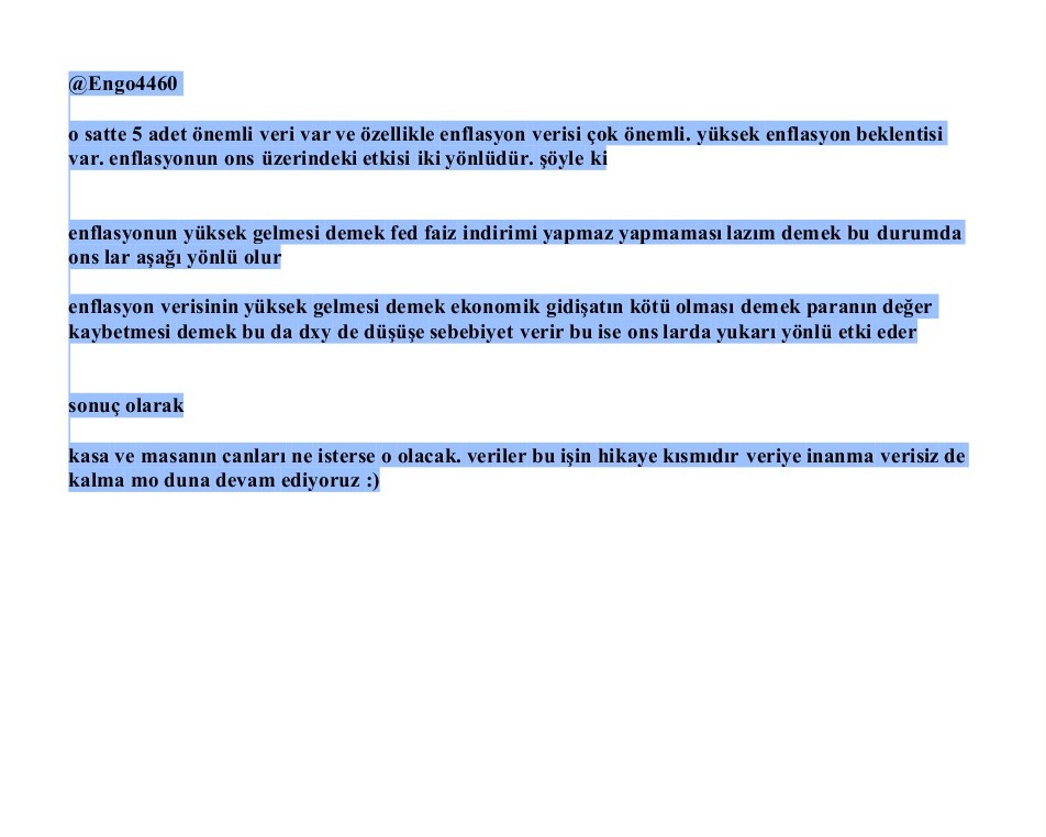 bugün 16:30 usd enflasyon verisi işsizlik hk yararlanma verisi vs var bunların ons larda etkisi büyük olur. açıklanan rakamları takip edeceğiz