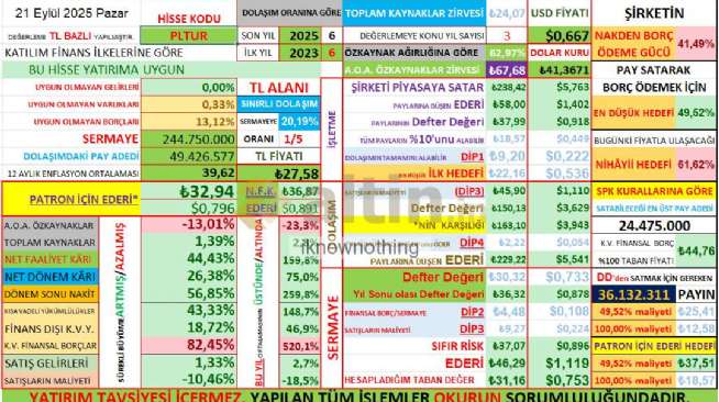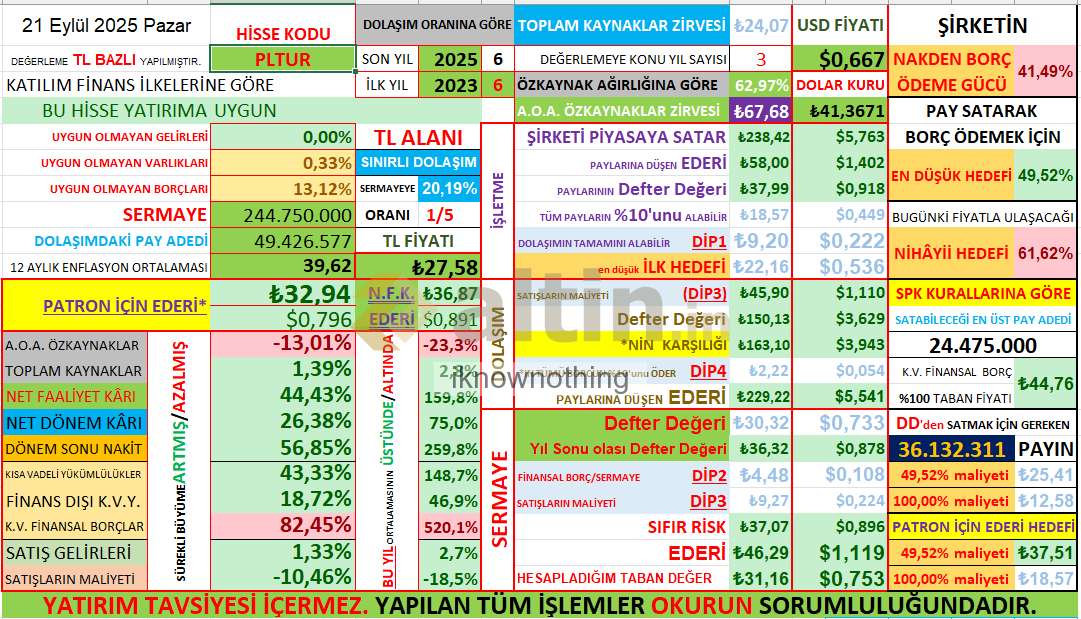 Sadece rakamsal bir temel analiz sunumudur. Şirketin KAP haberlerine bakmadım.