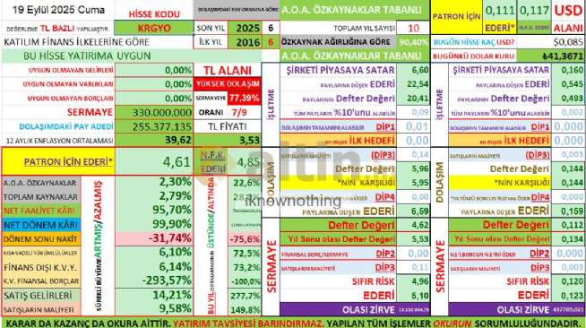 Ederinde diyorsak biz demiyoruz matematik söylüyor. Toplam Kaynaklarından Dönem Sonu Nakdini çıkarınca elde edilen rakamı sermayeye bölün lütfen. Ayrıca PD/DD oranı bir nas değildir. Borçları ne diye aldığını anlamazsak kâr edemeyiz. Temel analiz için tek bir kriter yetmez sayın @ULAŞILMAZ_39.