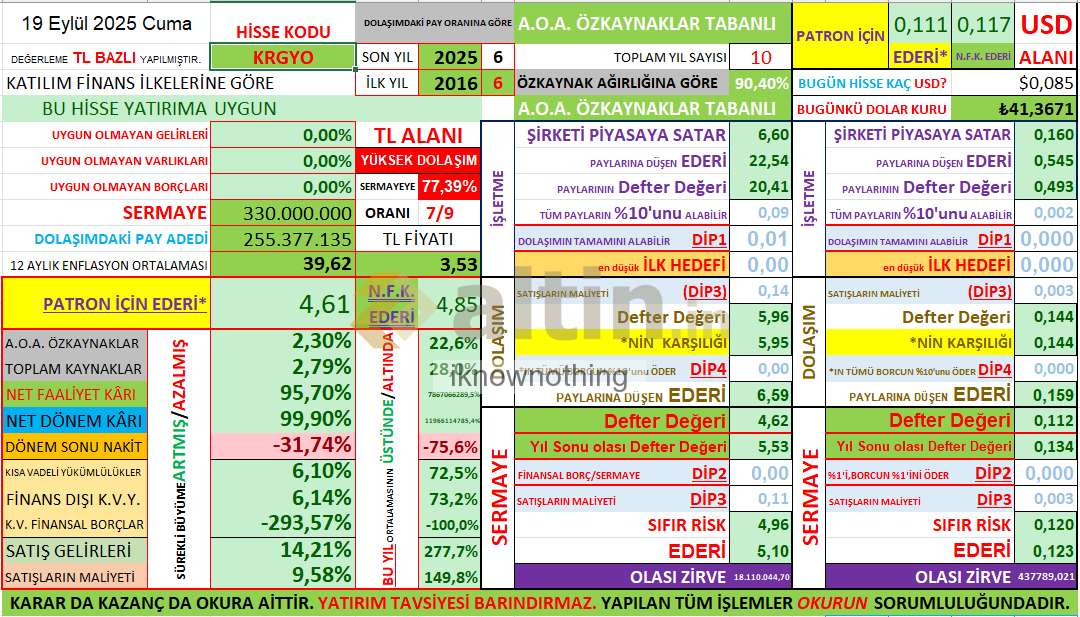 Bist (Borsa İstanbul) için iknownothing yorumu ()Selâmlar. Katılım Evim maalesef girdisi ve çıktısı TL olan ve farklı bilanço ilan eden bir şirket. Bu nedenle benim tablo orada çalışmıyor.