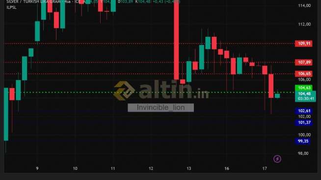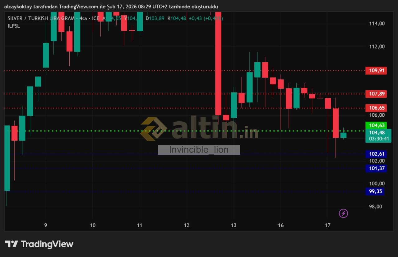 gümüş gram tl günlük pivot 104.05 destekler 101.38 99.73 97.06 dirençler 106.72 108.37 111.04