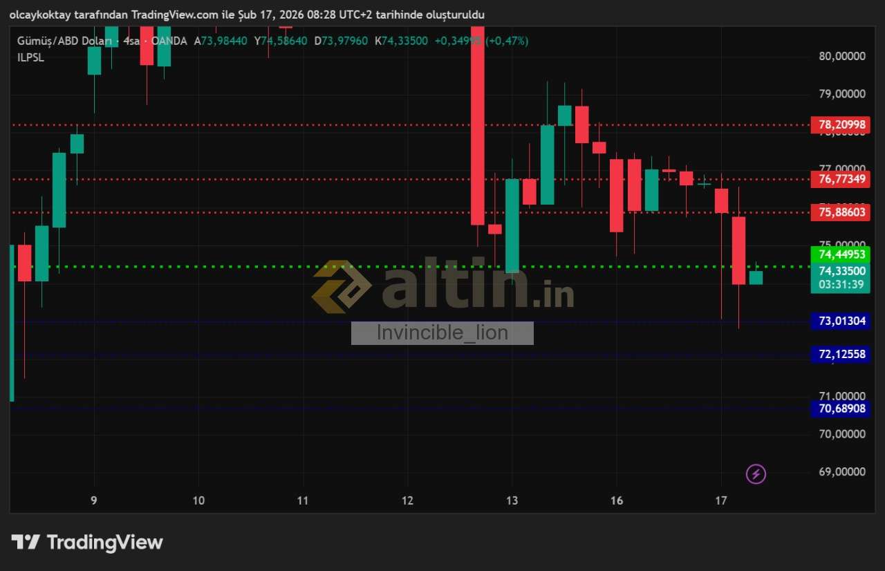 gümüş ons 4 saatlik pivot 74.44 destekler 73.01 72.12 70.68 dirençler 75.88 76.77 78.20