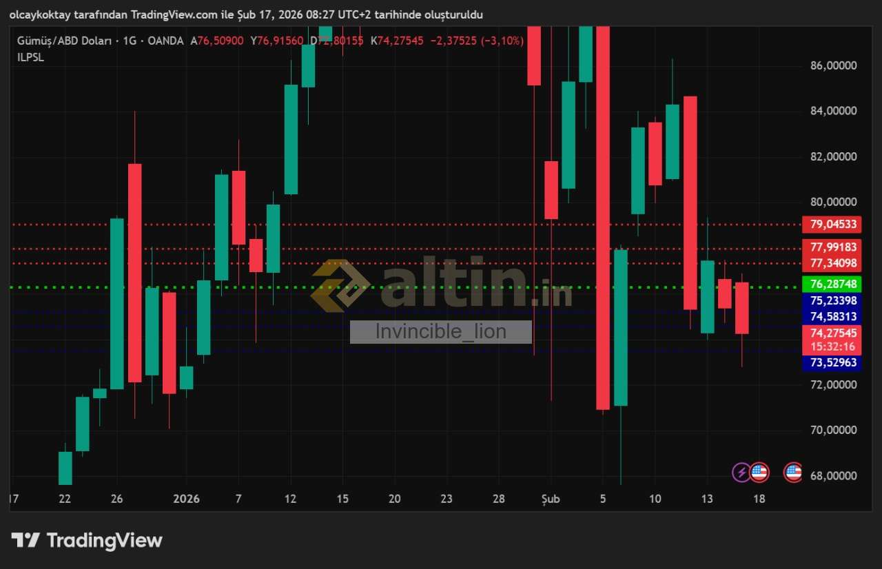 gümüş ons günlük pivot 74.14 destekler 72.25 71.09 69.20 dirençler 76.02 77.19 79.08