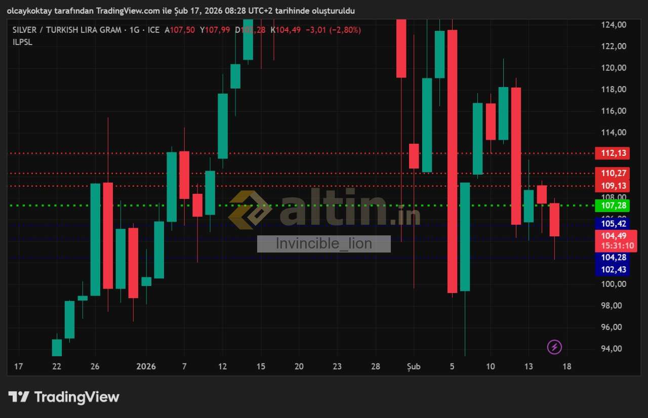 gümüş gram tl günlük pivot 107.28 destekler 105.42 104.28 102.43 dirençler 109.13 110.27 112.13