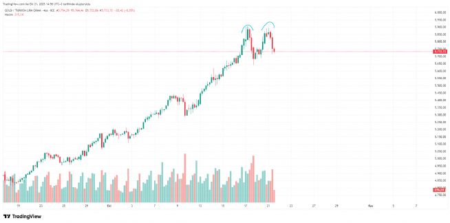 İkili tepe yapmış zaten günlükte trend dönüyor. Büyük ihtimal 5650-5600 hacimli kıracak . soluğu 5500 civarı alır dikkat edin.