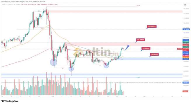86 destek seviyesi üzerinde kalıcılıkla birlikte, üst direnç 92 ye doğru hareketlenecektir.