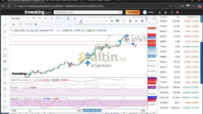 Gram Altın için KOŞKİNA61 yorumu ()ons 3751 altı kapatacakmı bakalım,