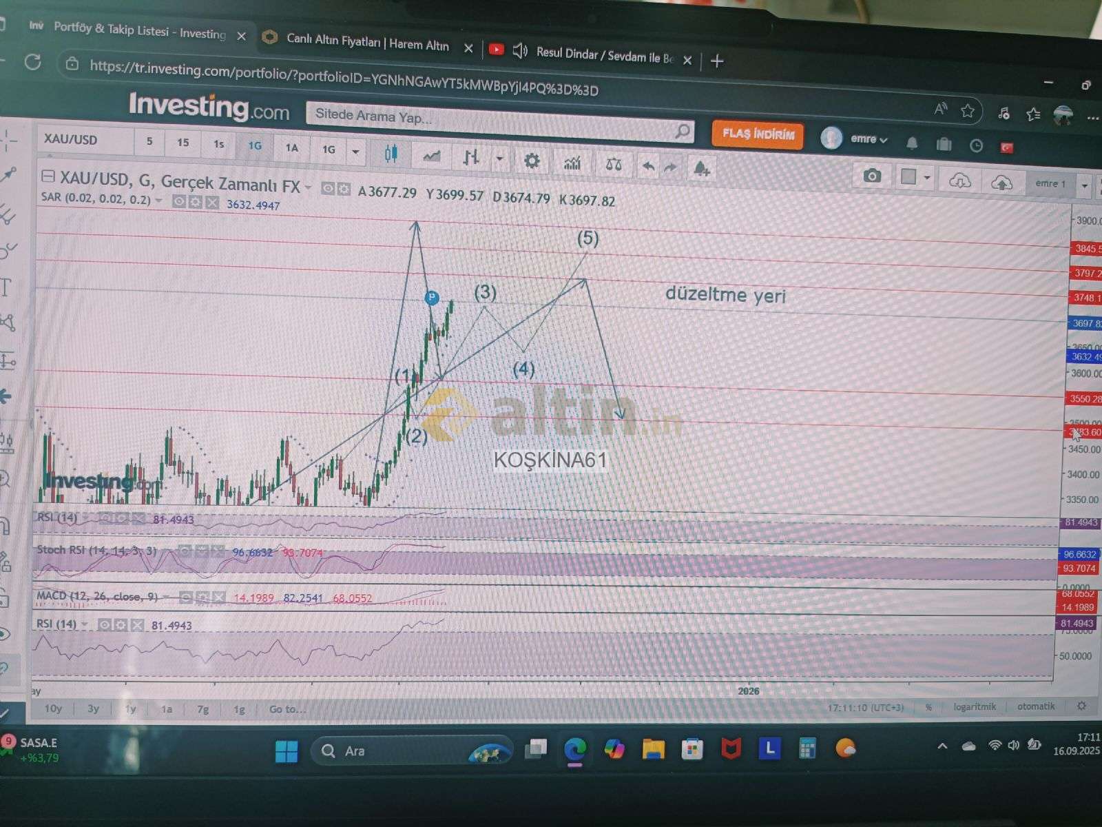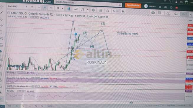 Gram Altın için KOŞKİNA61 yorumu ()Bı çizim yaptım 4 ay önce geldi 3740 ons bekliyordum 3703 onsdan döndü kiramadi 24 saat te bir önceki günün Altın da devam ediyor Fed 25 baz puanı fiyatladigini düşünüyorum bı düzeltme olur diye yolladım çıkarsa canın sağolsun elbet düzeltme gelecek hep beraber göreceğiz hayırlısı