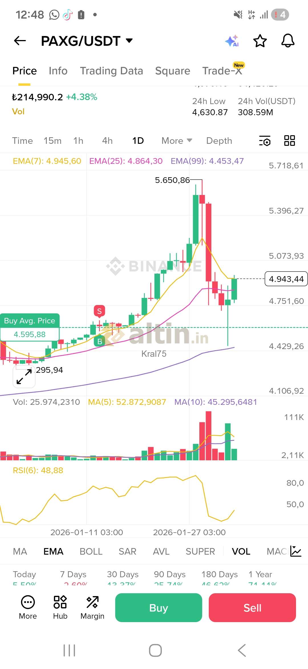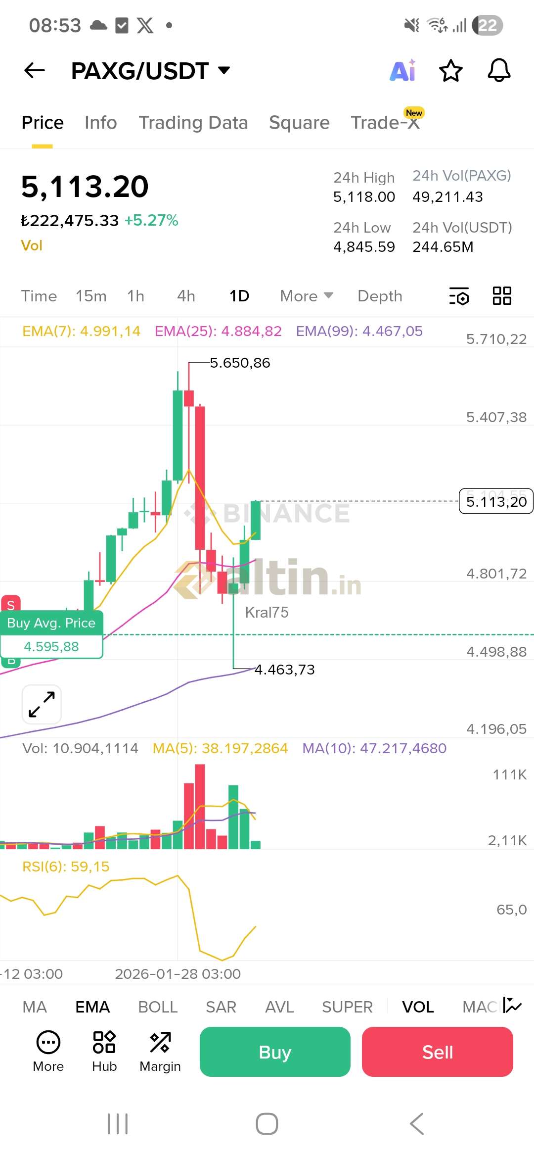 Gram Altın için Kral75 yorumu ()Gram ne olur 4900 altı sıkıntı bende yarı Altın yarı nakit bekliyorum