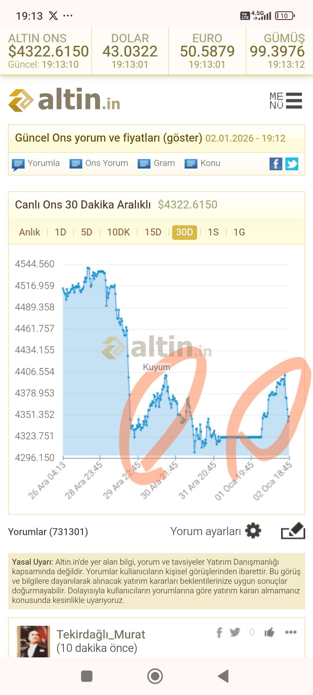 Baktığı sayfa:Gümüş'ün fiyatı ve satış fiyatları grafiği (8.1.2026 20:54:16)