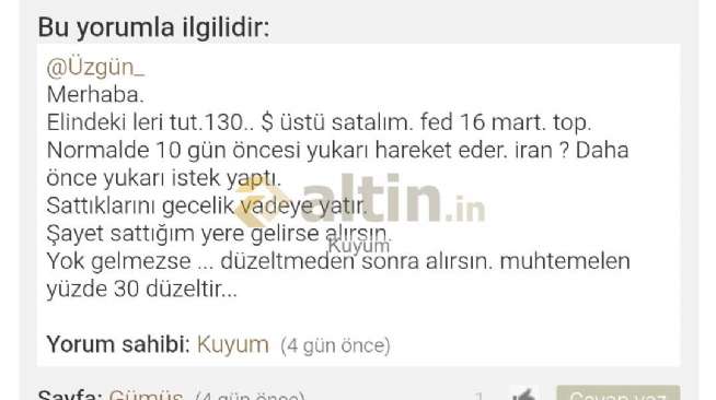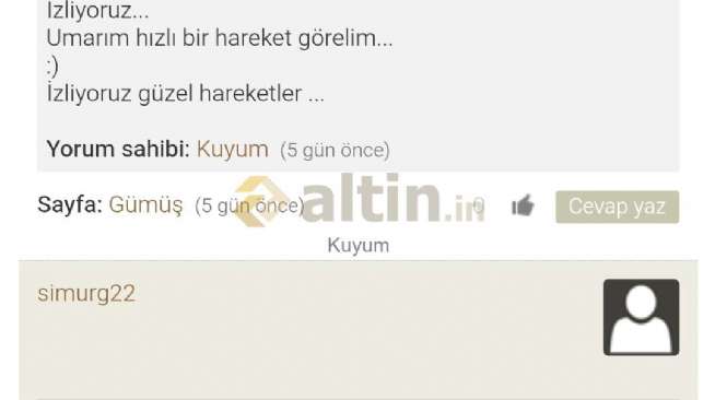 Gümüş için Kuyum yorumu ()Bekleyin o rakam gelince satıp yüzde 30 falan aşağıdan alıcaksın.