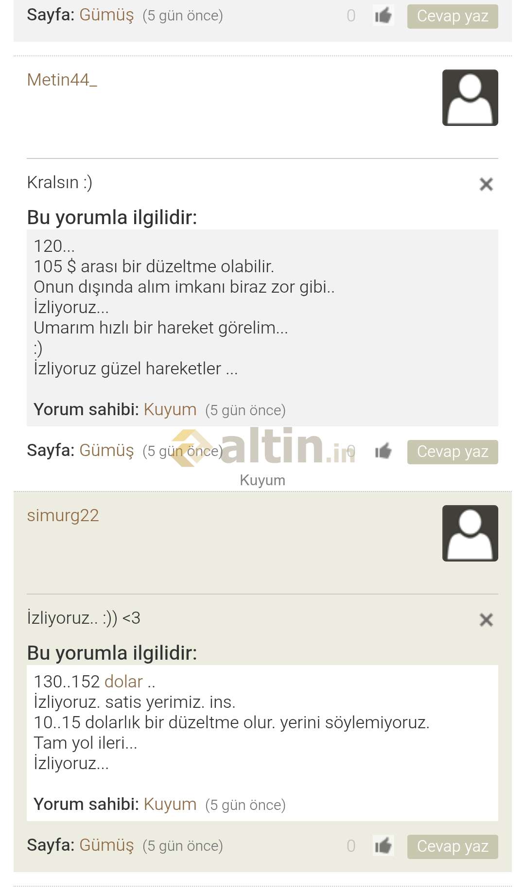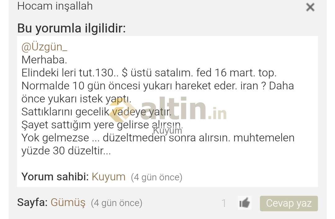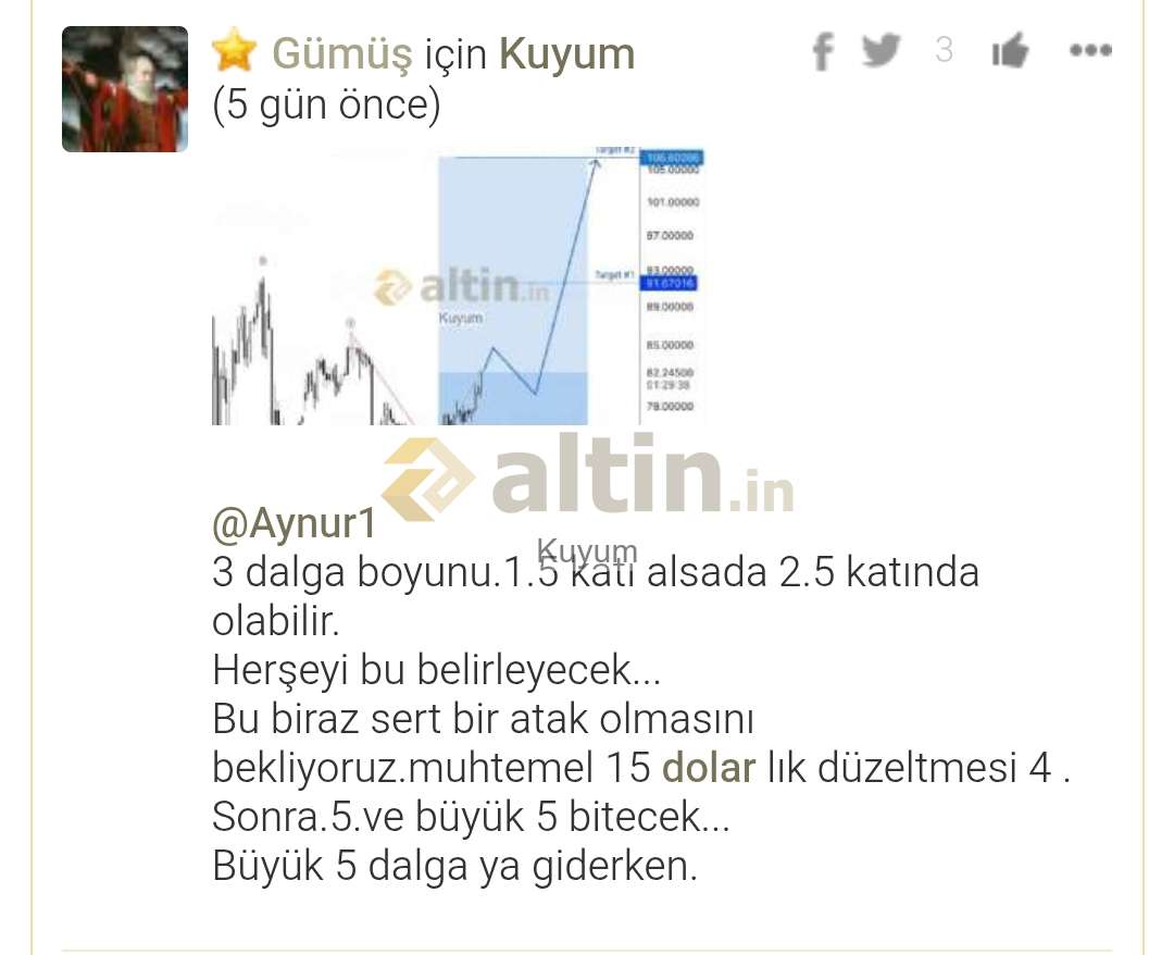 Gümüş için Kuyum yorumu ()Dostlar verdiğimiz beklenti rakamlarimiz $ dolar dır.