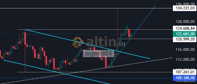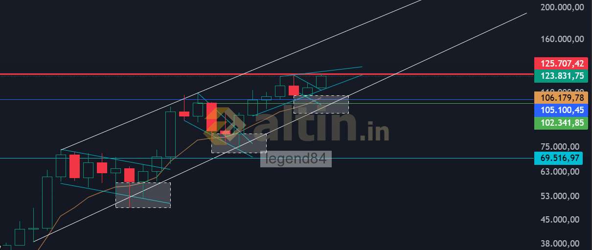 Bitcoin için legend84 yorumu ()122.575 üzeri 4 saatlik kapanışlar btc 'de fincan kulp formasyonunu tetikliyip 140k lara doğru yolculuk başlatabilir..
