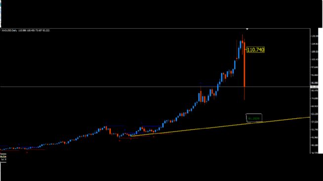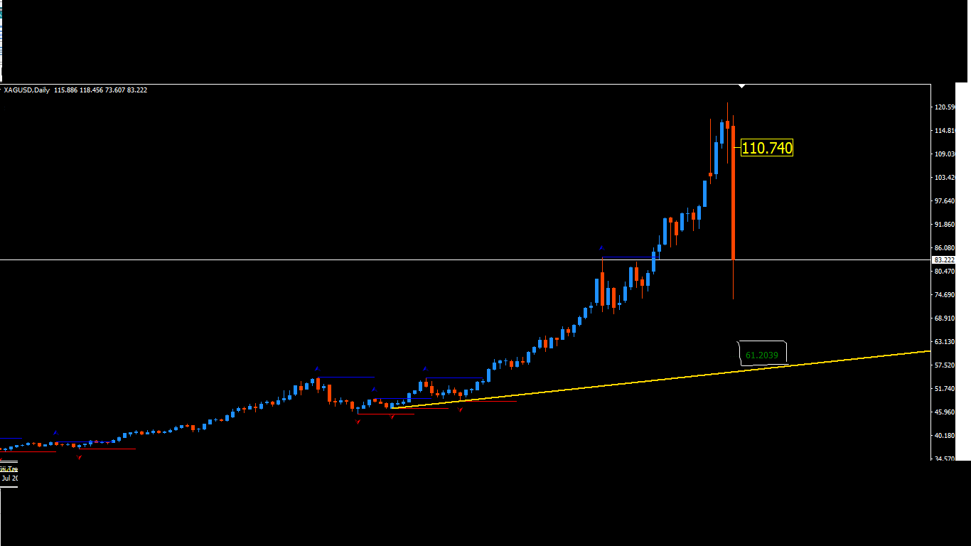 Böyle bir düşüş grafiklerde görünüyordu grafikteki sarı çizgi düşme noktasıdır. bunu gümüş en zirvedeyken görüyordum fakat 400 dolar lardan bahsedildiği için yanılırım diye atmadım sonra attım.