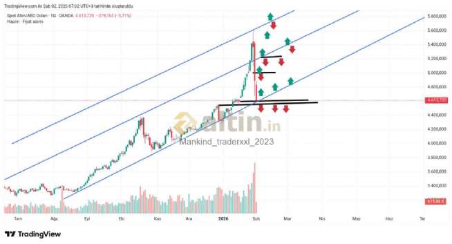 Ons için Mankind_traderxxl_2023 yorumu ()Bu ay biraz gecikebilir şuan 5157 geçilmeli ve 5335 üzerinde saatlik kalırsa maksimum 5790 ytd yanılabilirim ama bu dalgalanma durulmadan hersey bekler 4610 Altın da 45xx ytd